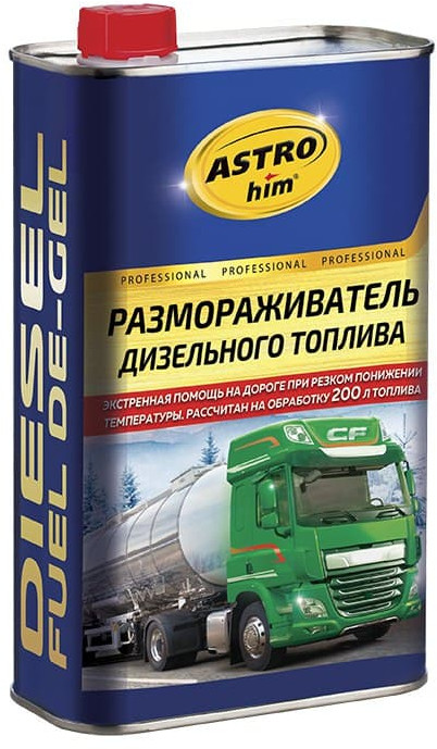 Размораживатель дизельного топлива «Astrohim» имеет высокоэффективный состав для экстренного размораживания дизельного топлива. Предназначен для восстановления текучести топлива и ликвидации кристаллов парафина при резком понижении температуры окружающей среды, в случае если это произошло в пути и в баке залито летнее дизельное топливо.