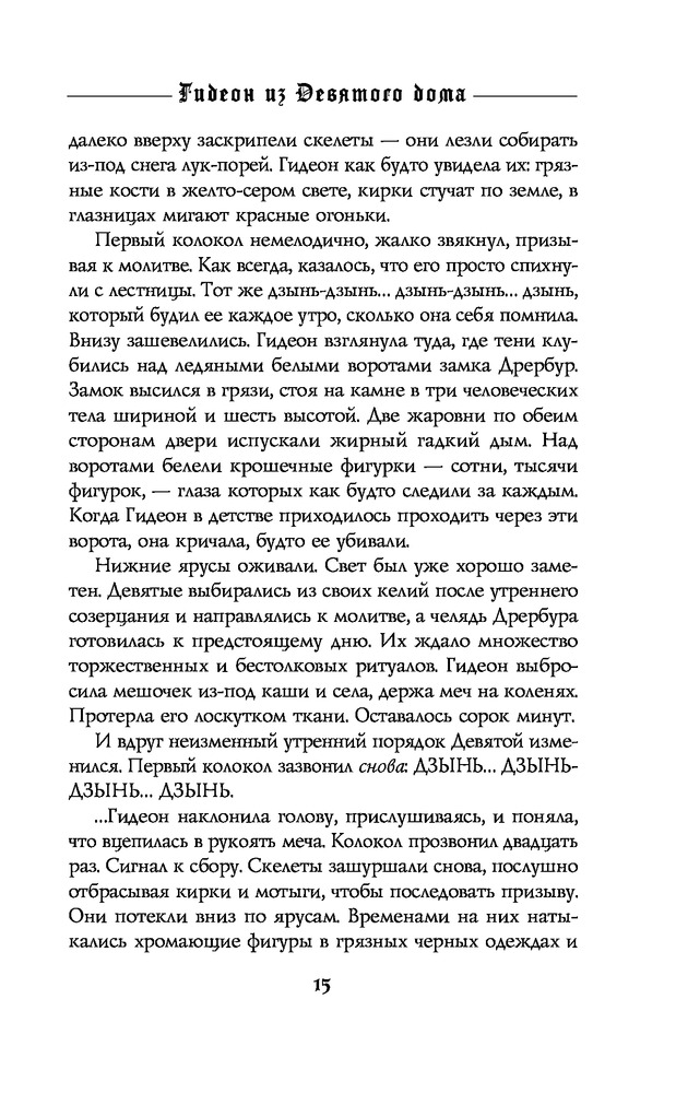 Гидеон из Девятого домаВ данный момент этот товар отсутствует в продаже. Возможно, у нас найдется аналогичный или похожий товар здесь. Серия: Fanzon. Наш выбор Мир «Гидеон из Девятого дома» Тэмсин Мьюир это вселенная звездолетов, далеких солнц, мастеров фехтования, жестокой политики и лесбиянок-некромантов. Воспитанная недружелюбными, окостеневшими монахинями, древними слугами и бесчисленными скелетами, Гидеон готова предать традиции и отказаться от рабства и загробной жизни в качестве живого мертвеца. Она зачехляет свой меч и готовится к дерзкому побегу. Но у Немезиды для нее другие планы. Харрохак Нонагесимус, Преподобная дочь Девятого дома и экстраординарная костяная ведьма, отправляется в бой. Император призвал наследников каждого из верноподданных Домов на смертельный поединок — испытание ума и мастерства. Если Харрохак преуспеет, она станет бессмертной всемогущей слугой Бога Воскрешения. Но ни один некромант не может выступить без своего рыцаря. Без рапиры Гидеон, Харроу потерпит неудачу и Девятый дом вымрет. Безусловно, некоторые вещи лучше оставить мертвыми. Лучший фантастический роман 2019 года по версии Amazon. Мир звездолетов, космических крепостей, бессмертного Императора и некромантов-аристократов. Темная магия сплетается с футуристической наукой, а группа соперников пытается выжить и раскрыть тайну замка, на планете, полной призраков. |