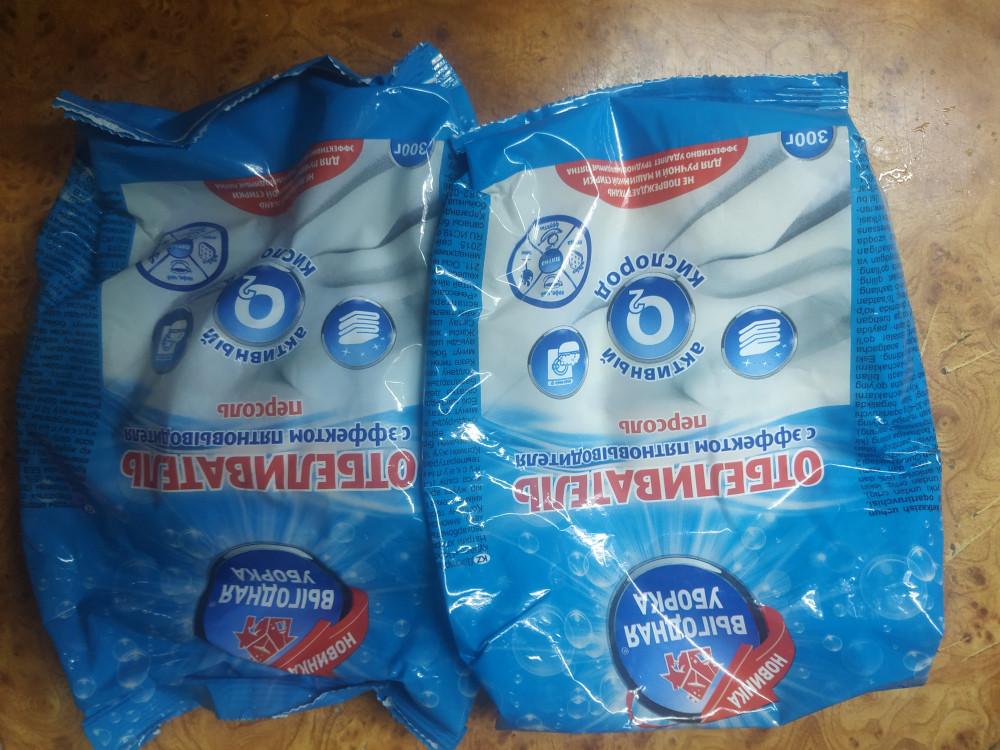 Слабый эффект, держала в кипятке, оставляла на час, но прям белоснежного эффекта нет, немного посветлее стали вещи, но не отбелились.