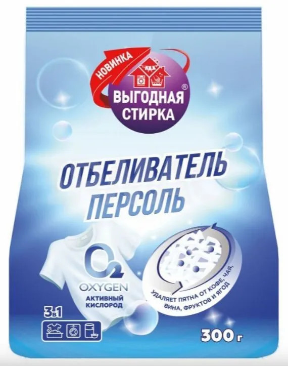 Выгодная уборка Отбеливатель с эффектом пятновыводителя «Персоль»+18 хорошо отбеливает удаляет пятна не удаляет стойкие пятна