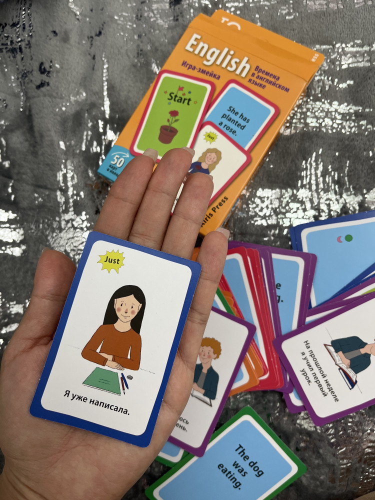 Времена в английском языке. Игра змейка-20% +62 прочные карточки красочные карточки закрепление знаний компактный формат