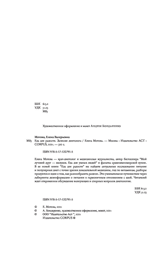 💳 Оплатить за товар можно при получении 🇰🇿 Есть бесплатная доставка по Казахстану от 1 дня 🎁 Копите бонусы с каждой покупки Серия: Элементы (Россия) Елена Мотова — врач-диетолог и медицинская журналистка, автор бестселлера «Мой лучший друг — желудок. Еда для умных людей» и фанатка средиземноморской кухни. |