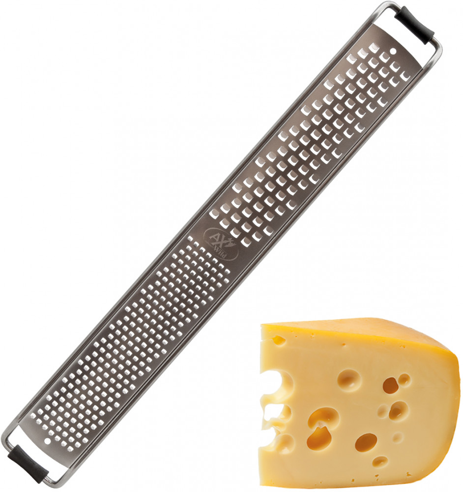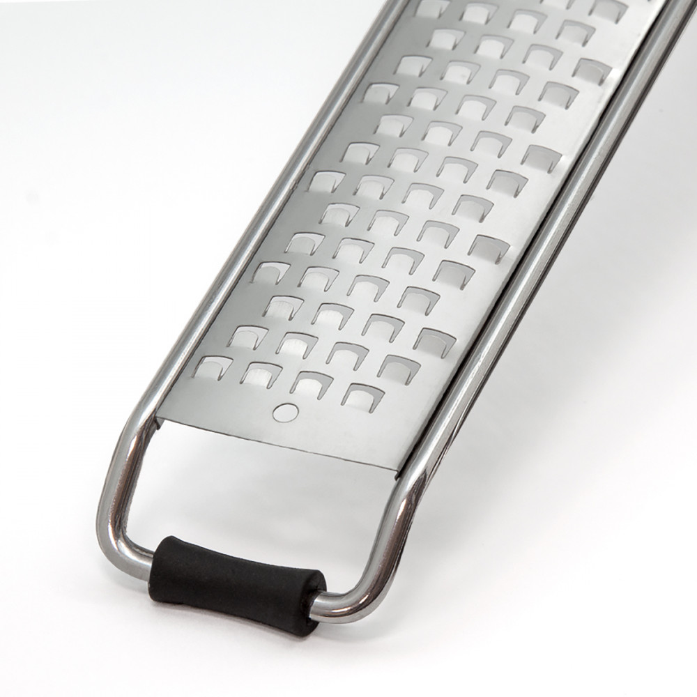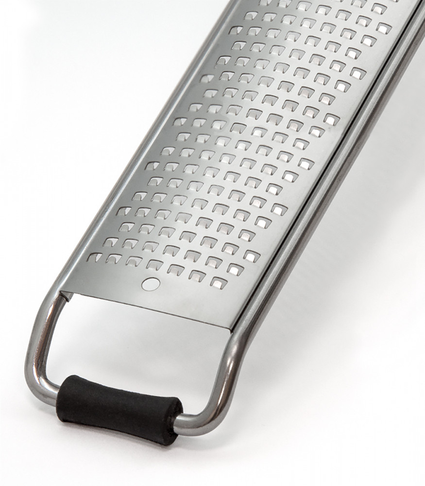 Очень качественная терка из добротной стали надежного производителя. Очень острая, пластиковые ограничители по краям позволяют поставить на край тарелки и удобно натереть пармезан. Для этого идеальная терка.