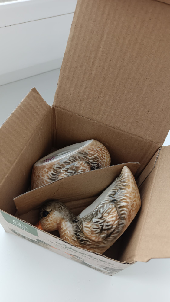 В восторге от уточек - миниатюрные, милые, аккуратно выполненные. Пришли в небольшой коробочке. Покупала в подарок, надеюсь понравятся))