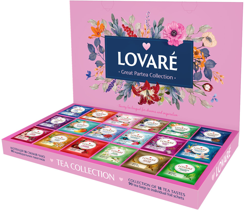 Lovare Набор чая «Great party»В данный момент этот товар отсутствует в продаже. Возможно, у нас найдется аналогичный или похожий товар здесь. «Great Party» — ассорти лучших чайных вкусов в индивидуальных конвертах. Супер набор для грандиозной вечеринки — чай для каждого гостя, даже с самым взыскательным вкусом. Набор «Great Party» также станет прекрасным подарком для поклонников качественного чая. В каждой упаковке — 18 видов чая по 5 конвертов. |