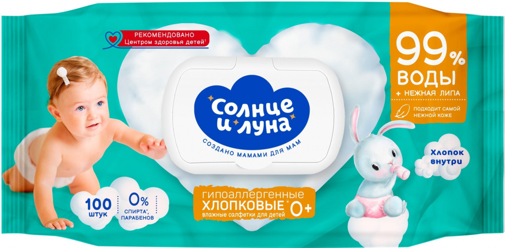 Солнце и луна Салфетки влажные детские-20% +13 плотный клапан недорогие экономные умеренная влажность