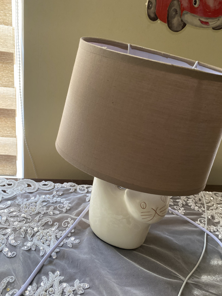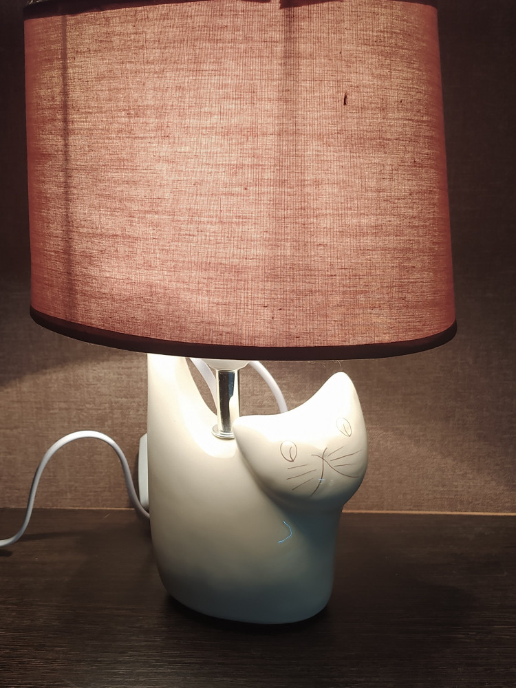 Лампа маленькая, прям под тумбу в спальне. Котик симпатичный.