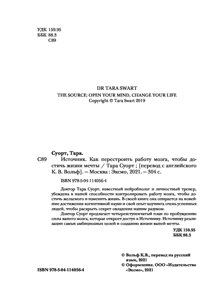 Доктор Суорт предлагает четырехступенчатый план по пробуждению силы вашего мозга, которая откроет доступ к Источнику. Источнику реализации самых амбициозных целей и созданию жизни вашей мечты. |