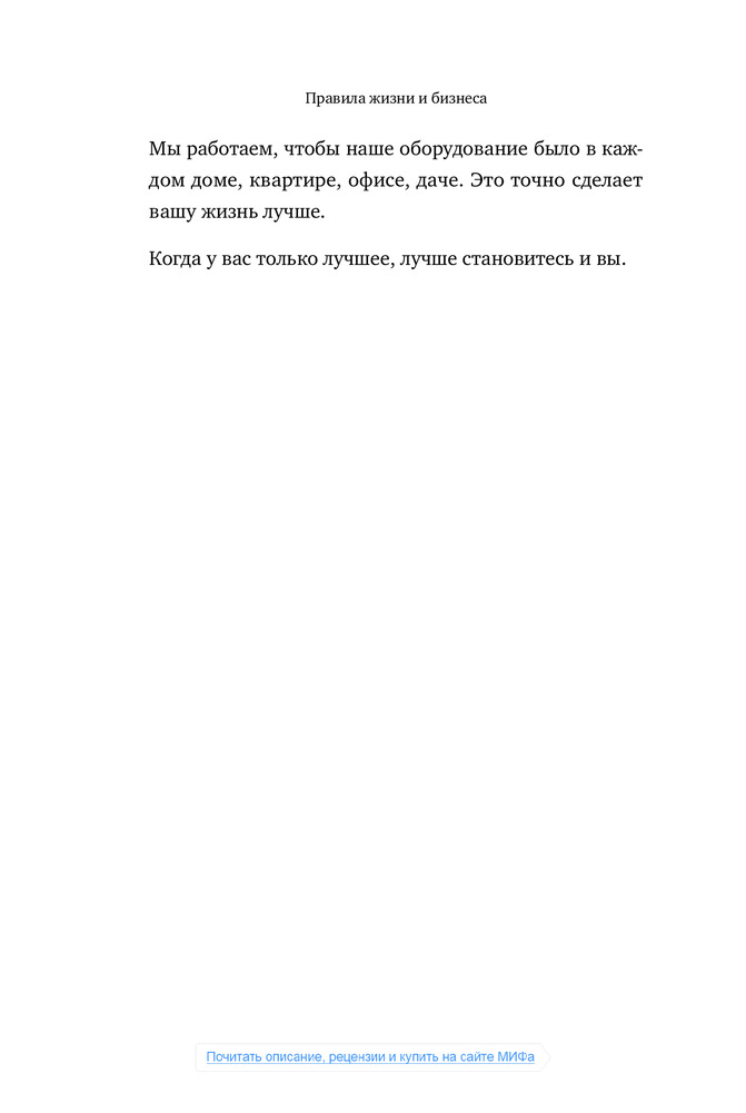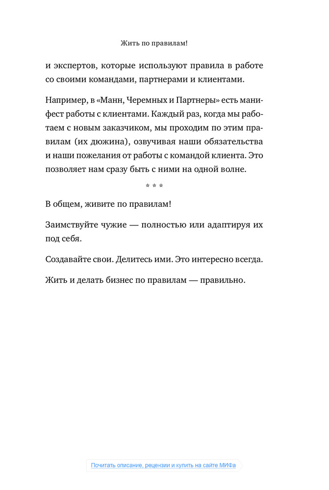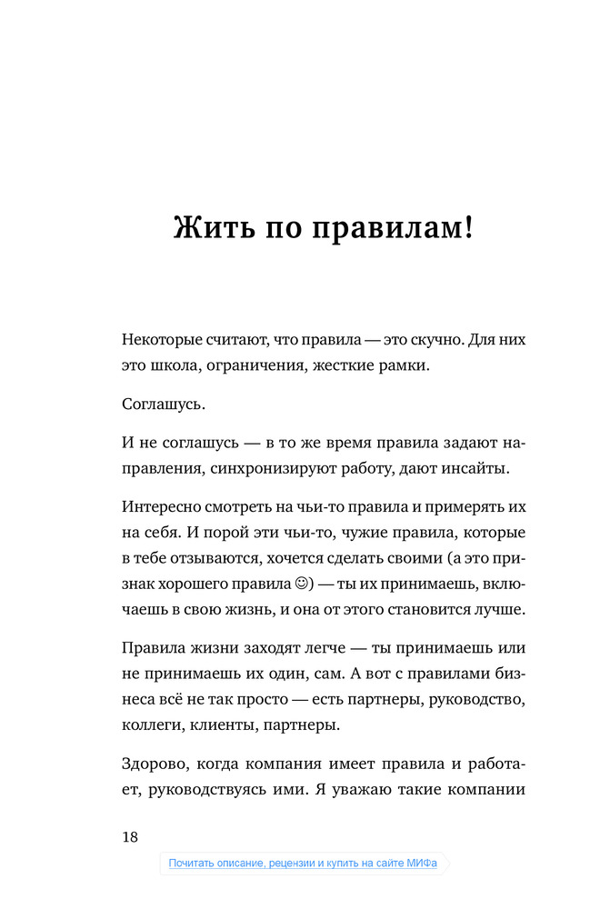 «Самый простой путь к тому, чтобы быть счастливым почаще, это хорошенько прислушаться к себе и спросить: «А что делает меня счастливым одномоментно?» Книга, плед и свечи? Море, бокал вина и любимый человек рядом? Горы, звездное небо и друзья у костра? Очередной миллион на банковском счете?.. Фиксируйте. Повторяйте».