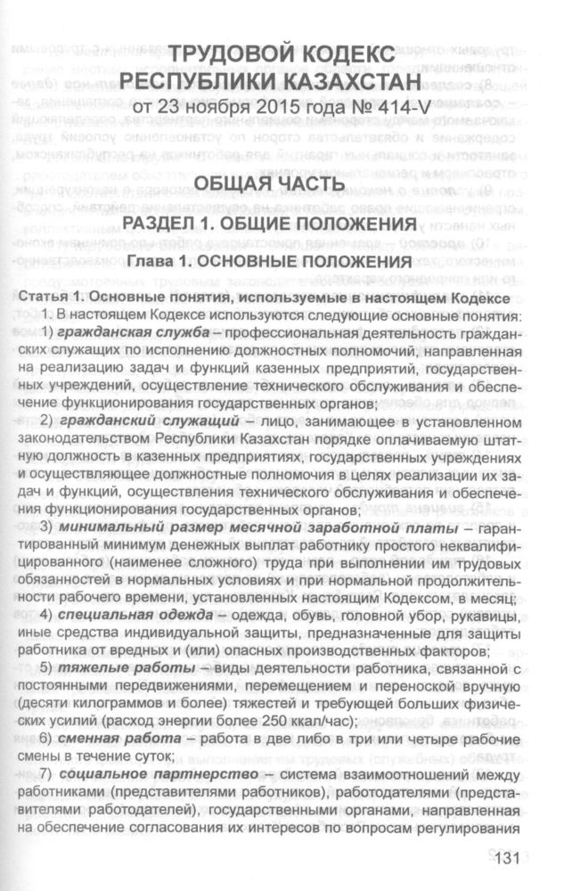 💳 Оплатить за товар можно при получении 🇰🇿 Есть бесплатная доставка по Казахстану от 1 дня 🎁 Копите бонусы с каждой покупки Трудовой кодекс Республики Казахстан от 23 ноября 2015 года № 414-V (на русском и казахском языках). |