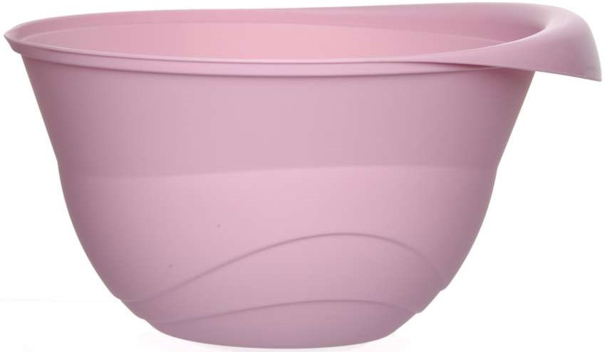 Очень удобная миска- взбивать ручным миксером. Глубокая , вместительная, приятная на ощупь и кажется прочной. Теперь при взбивании капли не разлетаются по всей кухне. Только цвет пришёл не розовый , как на картинке, а мятный, но мне понравилось даже больше.