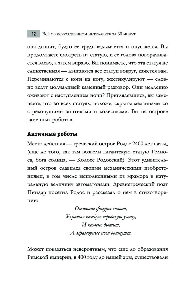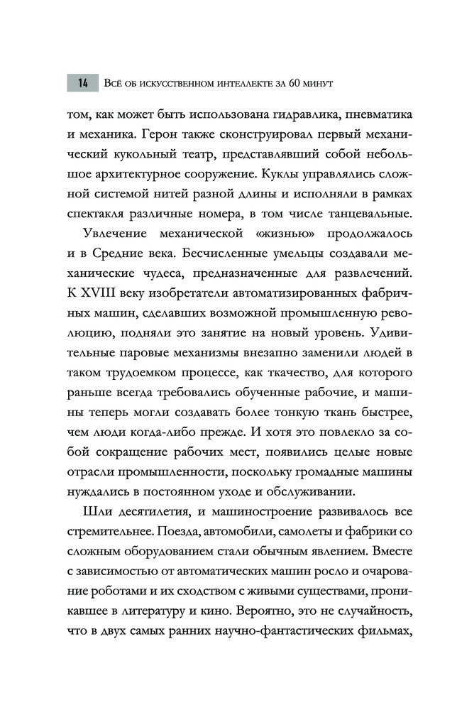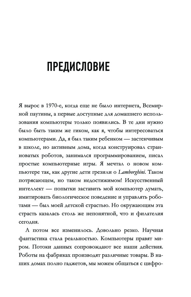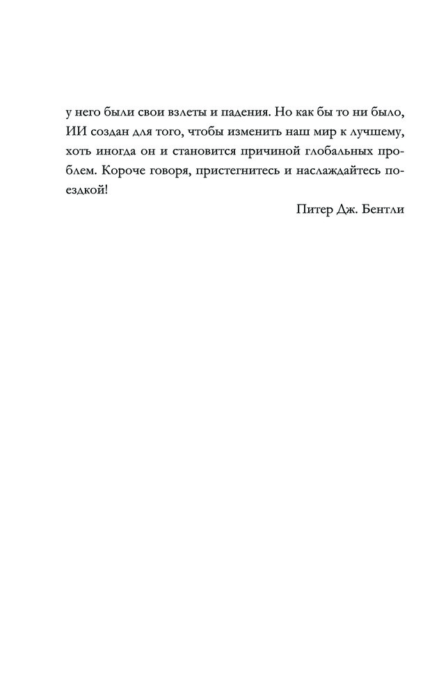 Всё об искусственном интеллекте за 60 минутВ данный момент этот товар отсутствует в продаже. Возможно, у нас найдется аналогичный или похожий товар здесь. Серия: Быстрая наука Жить в современном мире, не взаимодействуя с искусственным интеллектом и не подвергаясь его воздействию, практически невозможно. Как так получилось? И что будет дальше? Меняют ли роботы наш мир к лучшему или создают еще больше проблем? Ответы на эти и другие вопросы, а также историю развития ИИ — от истоков и мотивации его зарождения до использования умных алгоритмов — вы найдете на страницах книги Питера Дж. Бентли, эксперта в области искусственного интеллекта и известного популяризатора науки. |