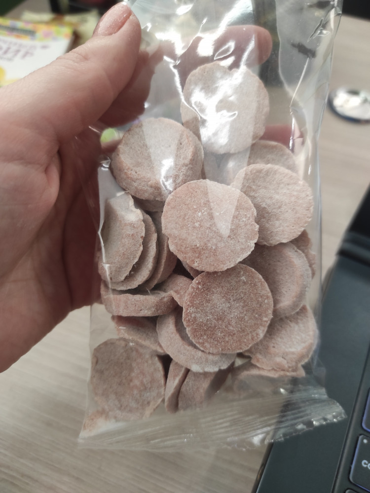 На мой вкус - это вкусно! Очень необычный, натуральный продукт без сахара, но на фруктозе. Форма и вкус с общепринятым зефиром не имеет ничего общего. Но для меня это как упругие, жевательные конфетки, которые удобно брать с собой на перекус, к чаю.