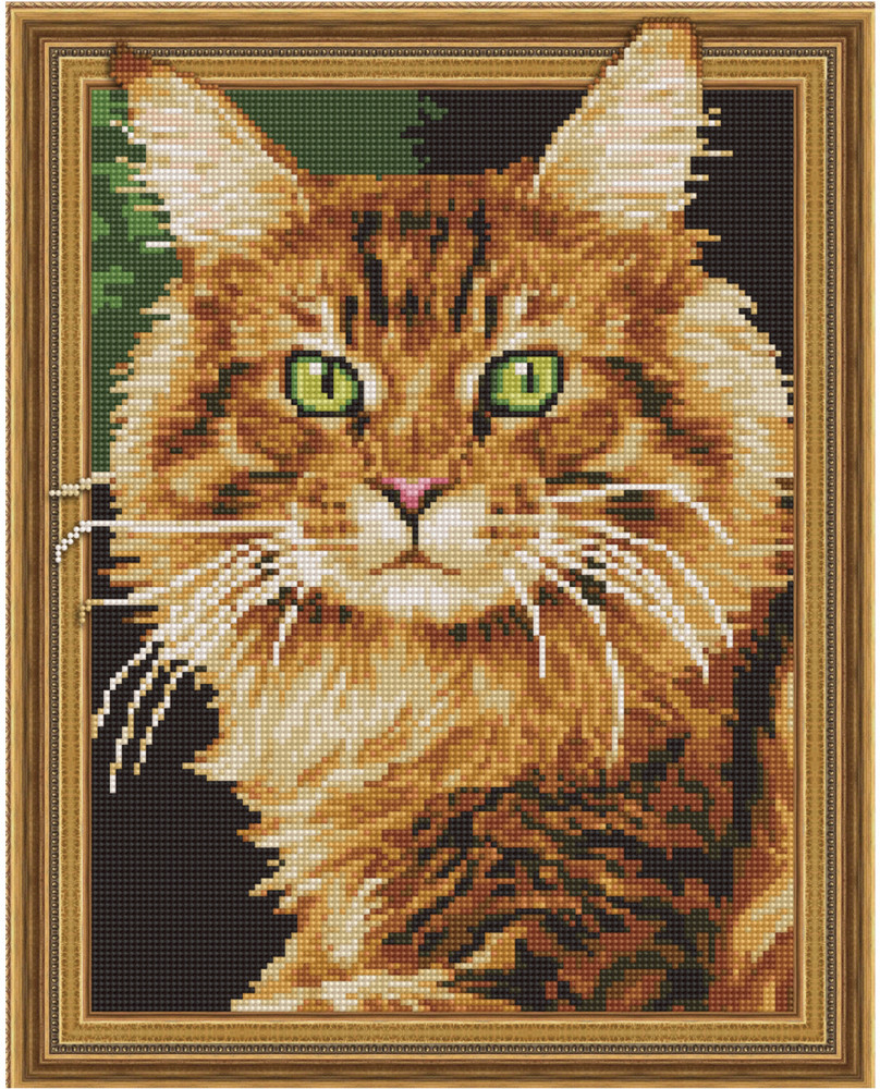 С помощью набора для творчества Рыжий кот можно создать алмазную картину с изображением рыжего кота.