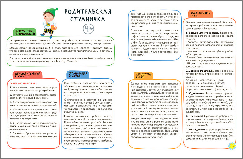 💳 Оплатить за товар можно при получении 🇰🇿 Есть бесплатная доставка по Казахстану от 1 дня 🎁 Копите бонусы с каждой покупки Книга «Речь, грамота 4+» из серии «Школа Семи Гномов. Активити с наклейками» предназначена для развития и тренировки грамотной речи у детей от 4 до 5 лет. |