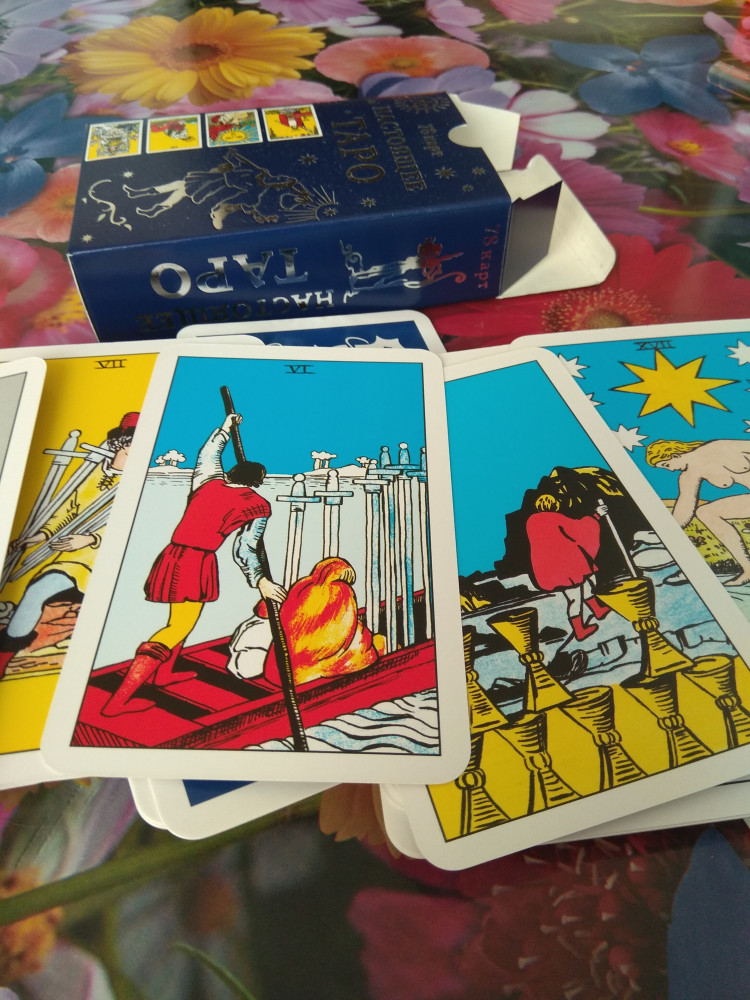 Вот фотографии, чтобы карты было видно. Изначально у меня как то не сложилось с этим Таро, но теперь мне очень нравится с ними работать.