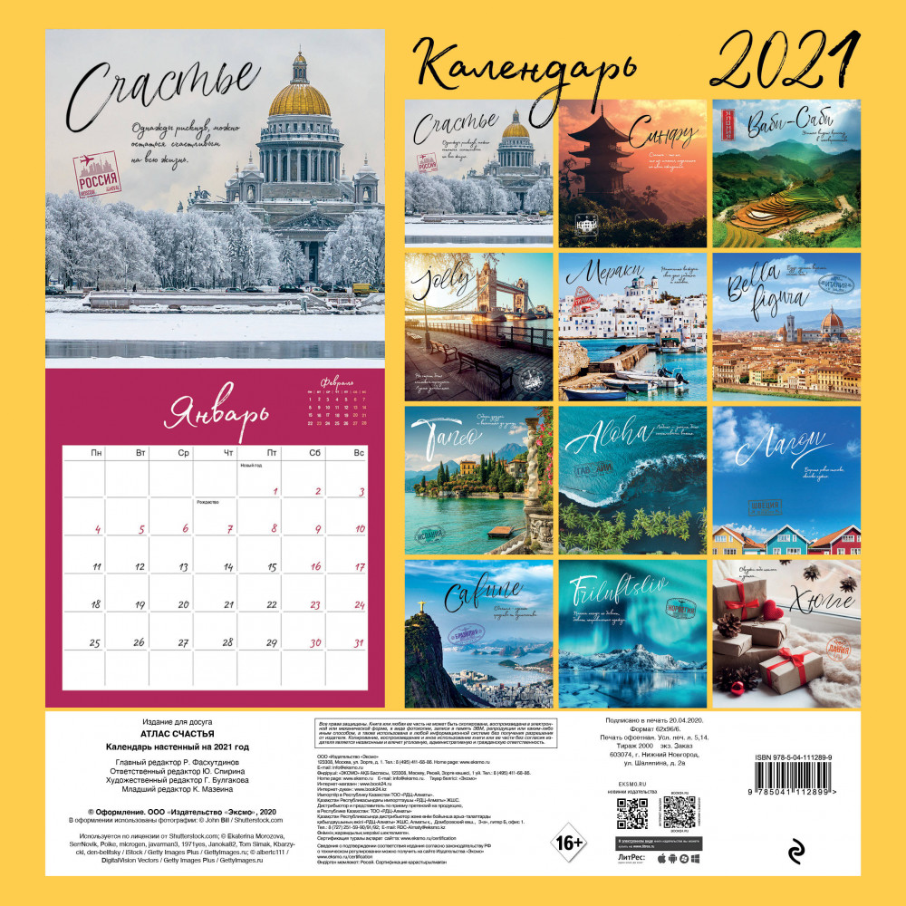 Календарь настенный «Атлас счастья»В данный момент этот товар отсутствует в продаже. Возможно, у нас найдется аналогичный или похожий товар здесь. Серия: Календари настенные 2021 Переноситесь в разные уголки мира и узнавайте уникальные рецепты счастья со всего света! Наполните июнь вкусом итальянского мороженного, а декабрь датским уютом и теплом. В каждой стране есть свои секреты, как быть счастливым. В календаре на 2021 год «Атлас счастья» мы собрали их все, чтобы каждый день предстоящего года стал ярким и насыщенным. И в этом вам помогут прекрасные виды и настроенческие снимки. |