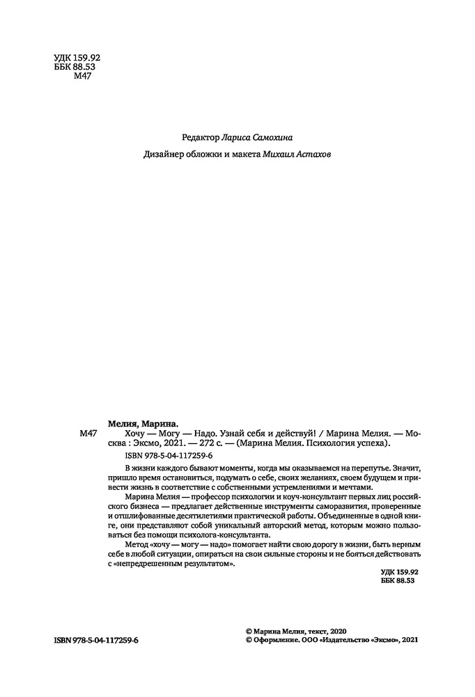 Серия: Марина Мелия. Простые правила мудрых родителей В жизни каждого бывают моменты, когда мы оказываемся на перепутье. Значит, пришло время остановиться, подумать о себе, своих желаниях, своем будущем и привести жизнь в соответствие с собственными устремлениями и мечтами. |