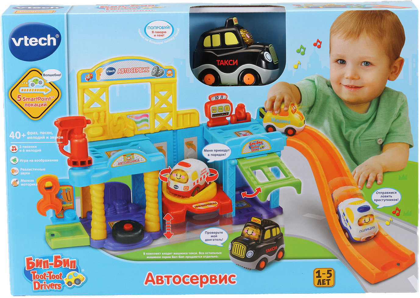 💳 Оплатить за товар можно при получении 🇰🇿 Есть бесплатная доставка по Казахстану от 1 дня 🎁 Копите бонусы с каждой покупки Серия: Toot-Toot Drivers Автосервис — великолепный игровой набор из новой серии игрушек Бип-Бип от бренда VTech! |