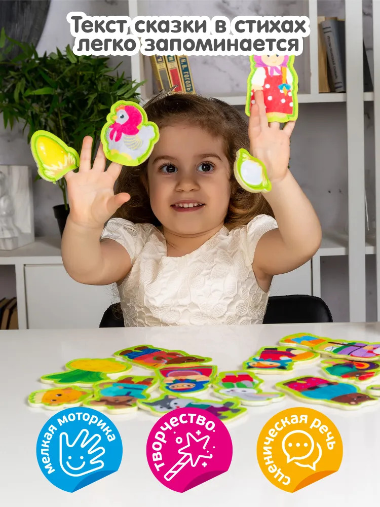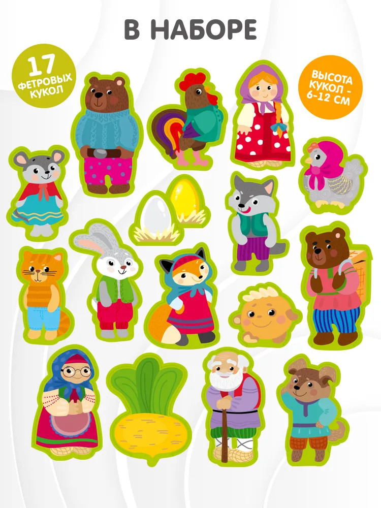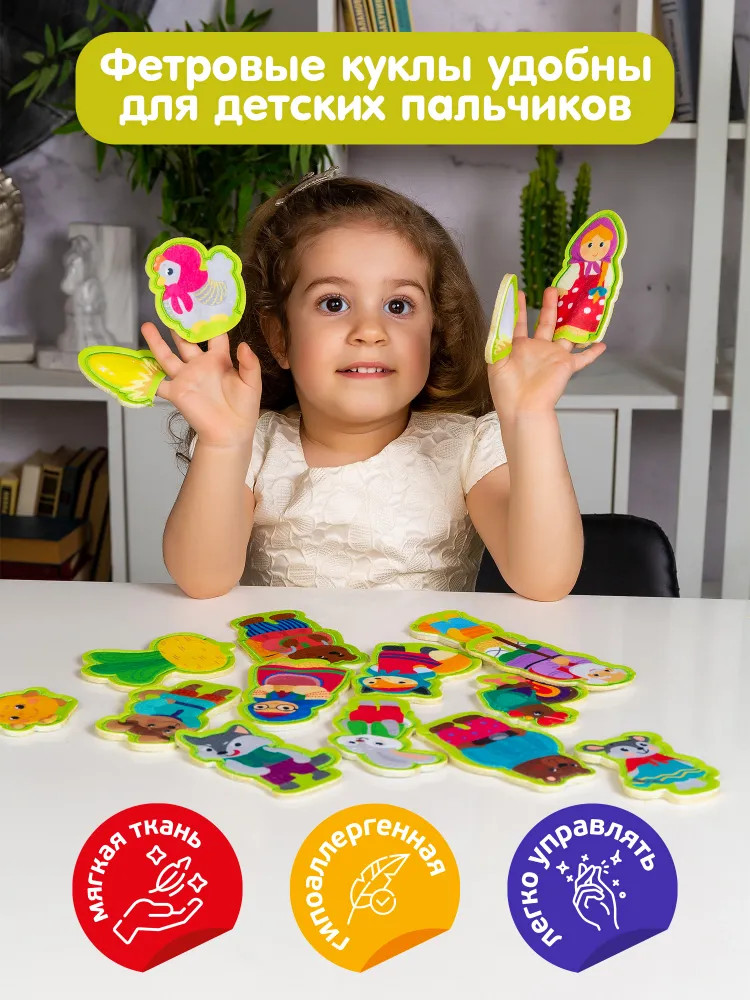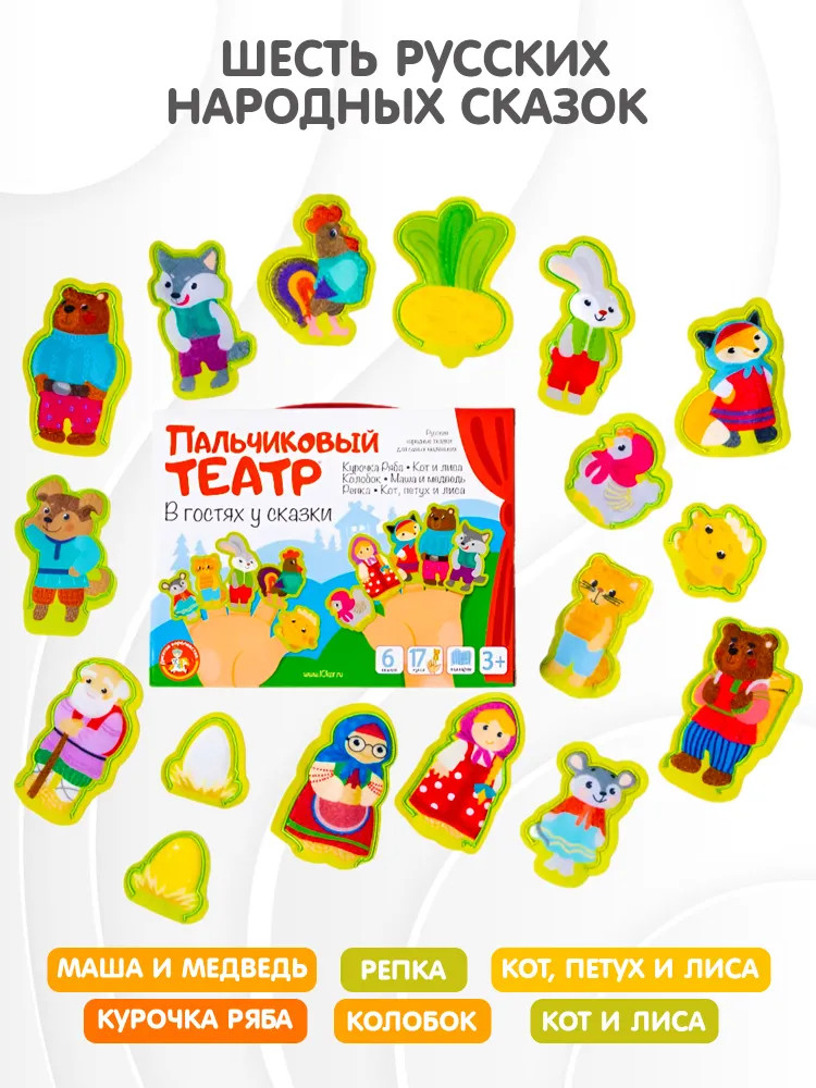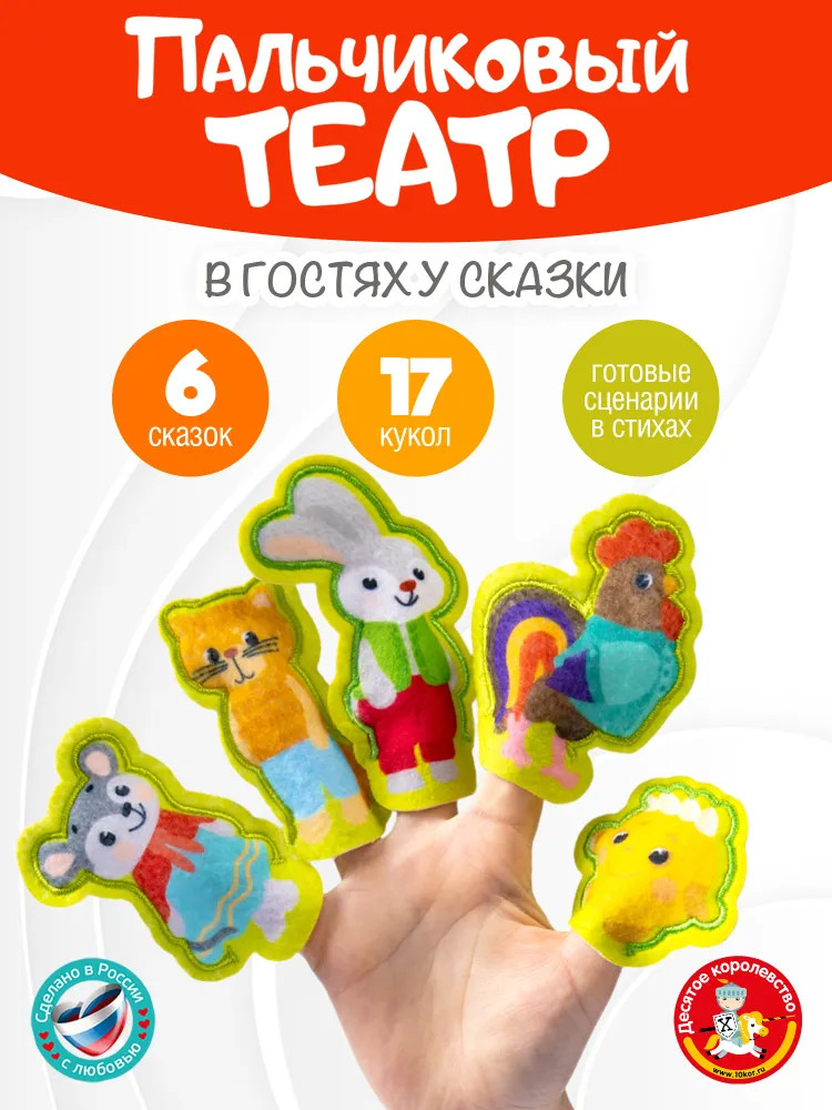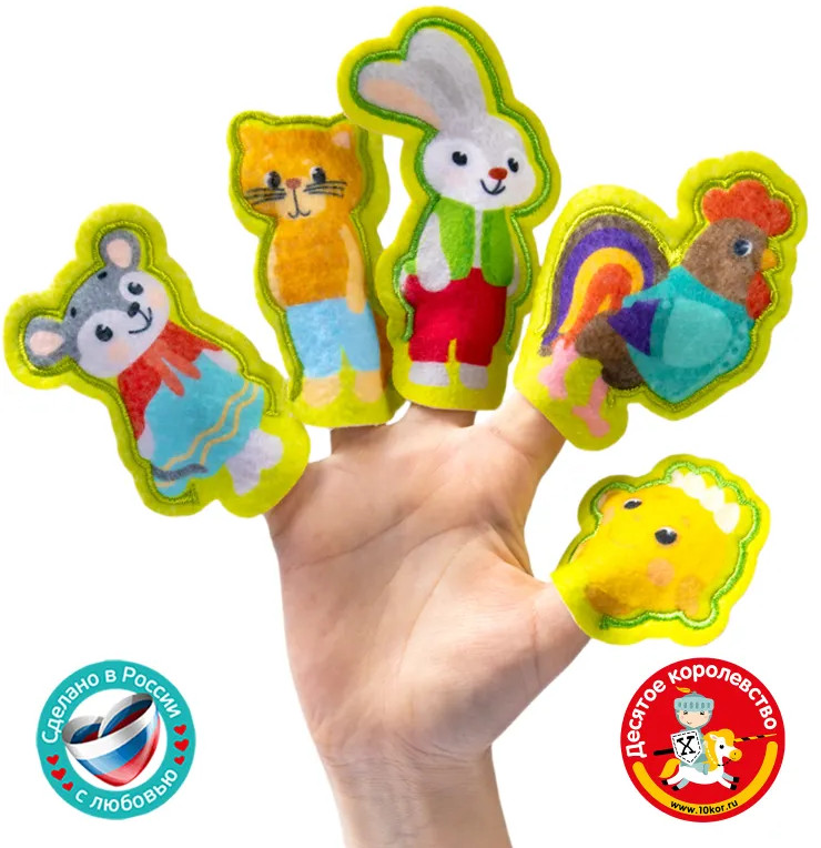 Десятое королевство Театр пальчиковый «В гостях у сказки»В данный момент этот товар отсутствует в продаже. Возможно, у нас найдется аналогичный или похожий товар здесь. С набором пальчикового кукольного театра «В гостях у сказки» вы легко и без лишней подготовки сможете устроить представление дома или в дороге. Наденьте куклы из мягкого фетра на пальчики и управляйте ими, тренируя мелкую моторику и ловкость движений. Куклы удобно надеваются на пальчики как взрослого, так и ребёнка. Ими легко и приятно управлять — просто двигайте пальчиком в стороны или сгибайте его. |