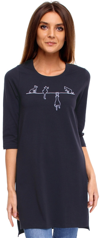 Туника понравилась. Трикотаж не тонкий. Котейки вышиты. Чей рост ниже 165 будет выглядеть как платье. На рост 170 и выше смотрится как на модели.