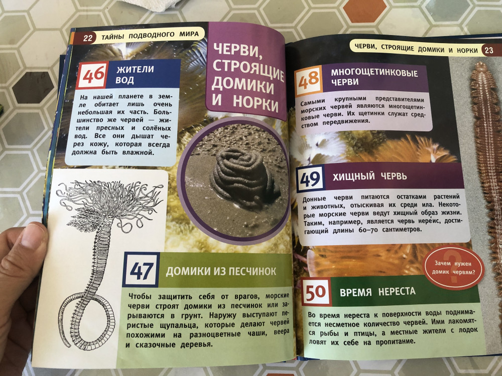 УМка Тайны подводного мира. 100 фактовВ данный момент этот товар отсутствует в продаже. Возможно, у нас найдется аналогичный или похожий товар здесь. Эта занимательная энциклопедия познакомит юного читателя с особенностями жизни подводных обитателей и тайнами, скрывающимися под толщами вод мирового океана. Яркие картинки, зрелищные фото и удивительные факты увлекут ребёнка и помогут ему быстро, эффективно и с удовольствием усвоить новую информацию. Благодаря компактным размерам энциклопедию удобно брать с собой в поездки. |