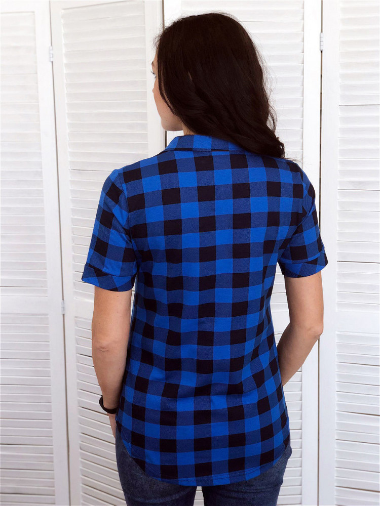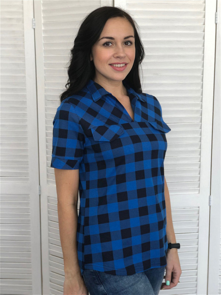 Брала на размер больше. Ткань средней плотности, мягкий трикотаж, тянется несильно. Клеточки - принт, изнанка синяя. Низ закруглён, покрой прямой. Сшито аккуратно. Цвет не такой яркий, как на фото.