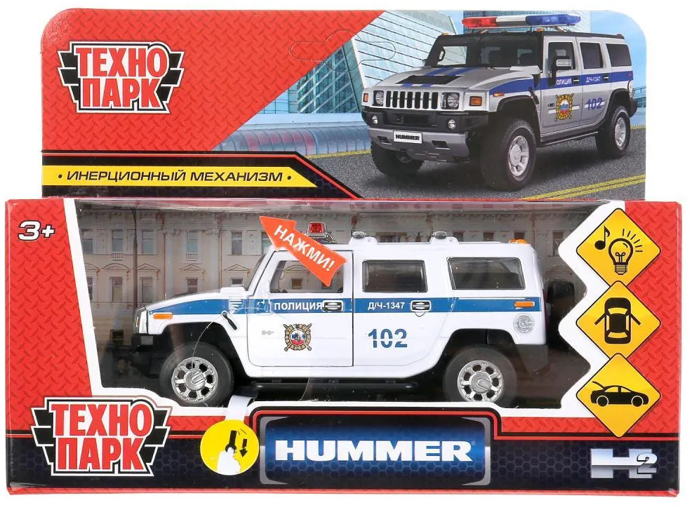 Металлическая инерционная модель «Hummer H2 Полиция» ТМ «Технопарк» станет отличным подарком для ребёнка: |