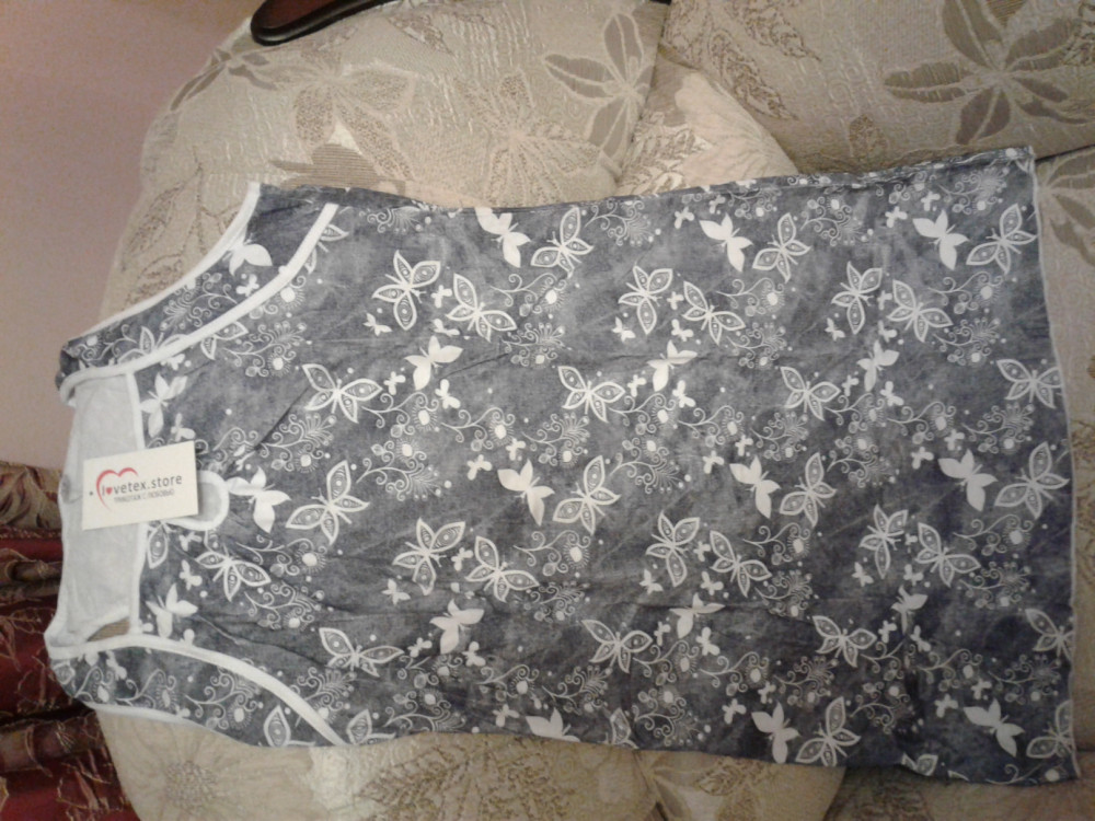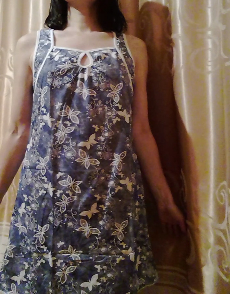 Сорочка сшита очень аккуратно, приятна к телу, симпатичная расцветка. Идёт размер в размер. На свой 42 заказала 44, чтобы было свободно. Село идеально. Похожа на домашнее платье. Рекомендую.