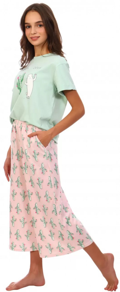 Отличный комплект для дома! Материал очень комфортный! Летом точно не будет жарко в нем, так как он не прилегает, а наоборот комфортно свободный!!! Горловина у футболки отличная ( не широкая), что позволяет при наклоне тела вперед, не показывать на всеобщее обозрение груди и нижнее белье надетое на него))) а я в большей части не ношу бюстгальтер 🫣 дома. Всегда обращаю внимание на горловину любой домашней одежды, так как часто прогибаемся и в доме и в саду. Поэтому, чтобы не показывать ничего лишнего, выбираю высокую горловину!!!