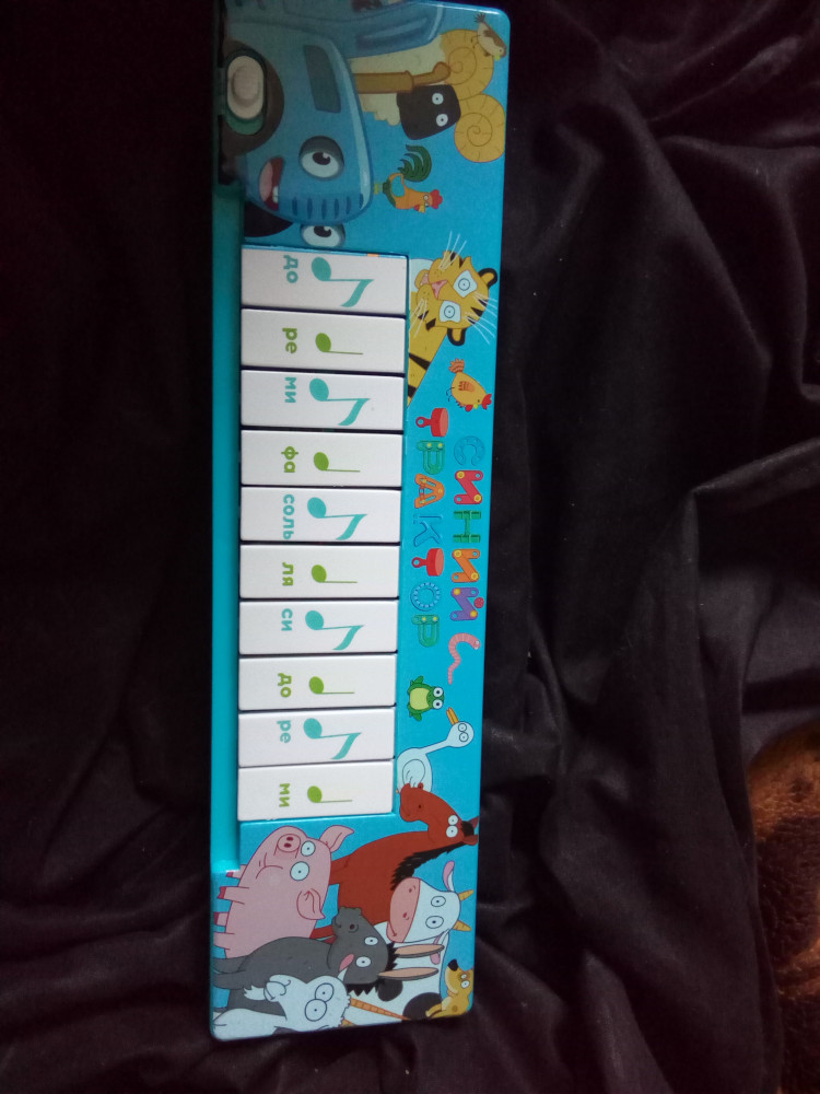 Дешевый хлипкий пластик. ОЧЕНЬ тихий звук, к тому же динамик снизу, глушится совсем. Нет кнопки выключения, только если батарейку вытащить. За клавишами не закреплены песни и звуки, они играют хаотично или тупо подряд куда не жми. В оффлайне никогда бы это не купила.