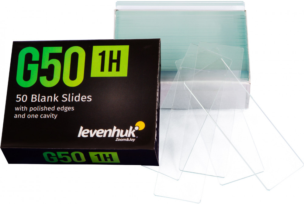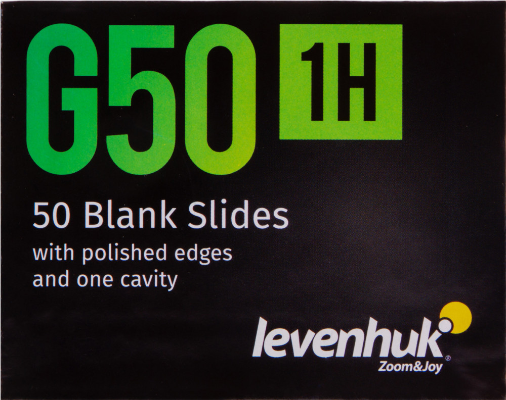 «Levenhuk G50 1H» — предметные стекла с лункой. В набор входят 50 отдельных стекол высокой степени прозрачности. Они созданы специально для рассматривания под микроскопом препаратов «висячая капля». В любительской микроскопии подобные микропрепараты используют для изучения живых водных организмов, профессионалам стекла с лункой нужны для проведения медицинских и микробиологических исследований.