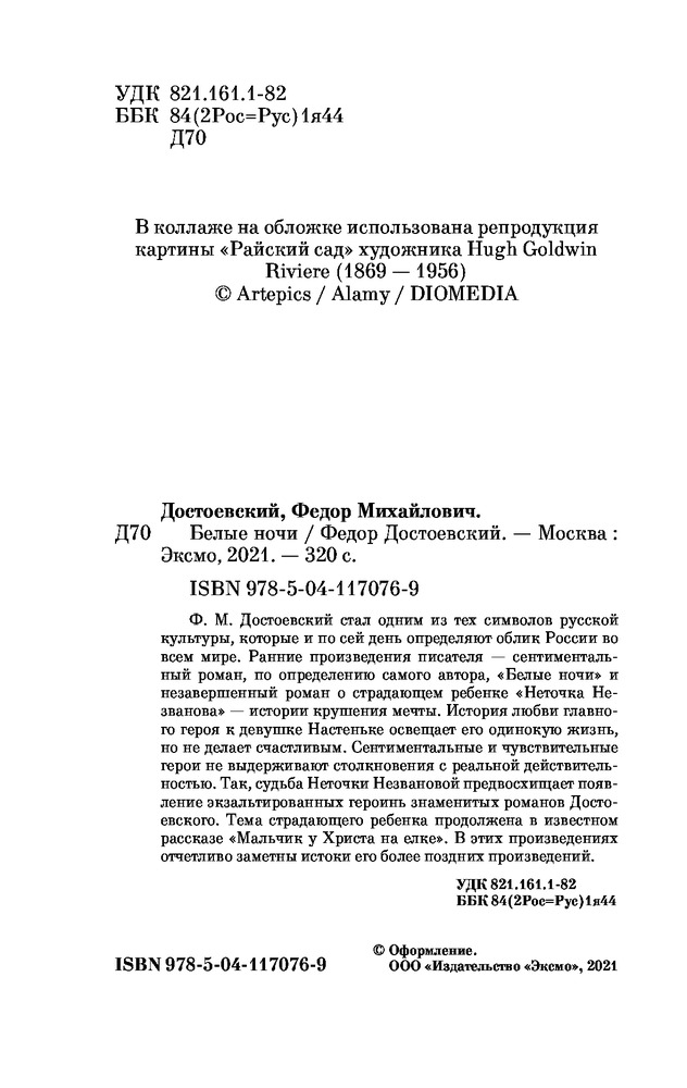 💳 Оплатить за товар можно при получении 🇰🇿 Есть бесплатная доставка по Казахстану 🎁 Копите бонусы с каждой покупки Серия: Pocket Book (обложка) Ф.М. Достоевский стал одним из тех символов русской культуры, которые и по сей день определяют облик России во всем мире. Ранние произведения писателя — сентиментальный роман, по определению самого автора, «Белые ночи» и незавершенный роман о страдающем ребенке «Неточка Незванова» — истории крушения мечты. История любви главного героя к девушке Настеньке освещает его одинокую жизнь, но не делает счастливым. Сентиментальные и чувствительные герои не выдерживают столкновения с реальной действительностью. Так судьба Неточки Незвановой предвосхищает появление экзальтированных героинь знаменитых романов Достоевского. Тема страдающего ребенка продолжена в известном рассказе «Мальчик у Христа на елке». В этих произведениях отчетливо заметны истоки его более поздних произведений. |