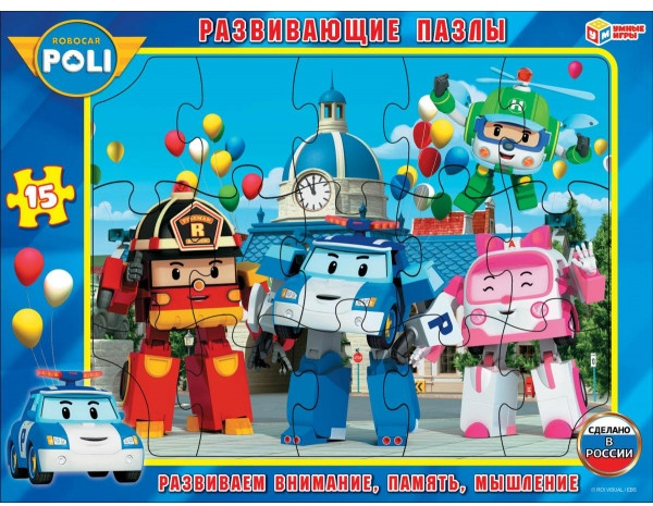 Умные игры Пазл «Робокар Поли»В данный момент этот товар отсутствует в продаже. Возможно, у нас найдется аналогичный или похожий товар здесь. Развивающие пазлы в рамке «Робокар Поли» ТМ «Умные игры» непременно понравятся малышу. Задача ребёнка — в правильной последовательности соединить пазлы друг с другом и получить в результате готовую картину с изображением персонажей любимого мультсериала. Благодаря небольшому количеству деталей и рамке с небольшими подсказками, малыш без труда сможет выполнить задание, с каждым разом делая это всё быстрее и быстрее. |