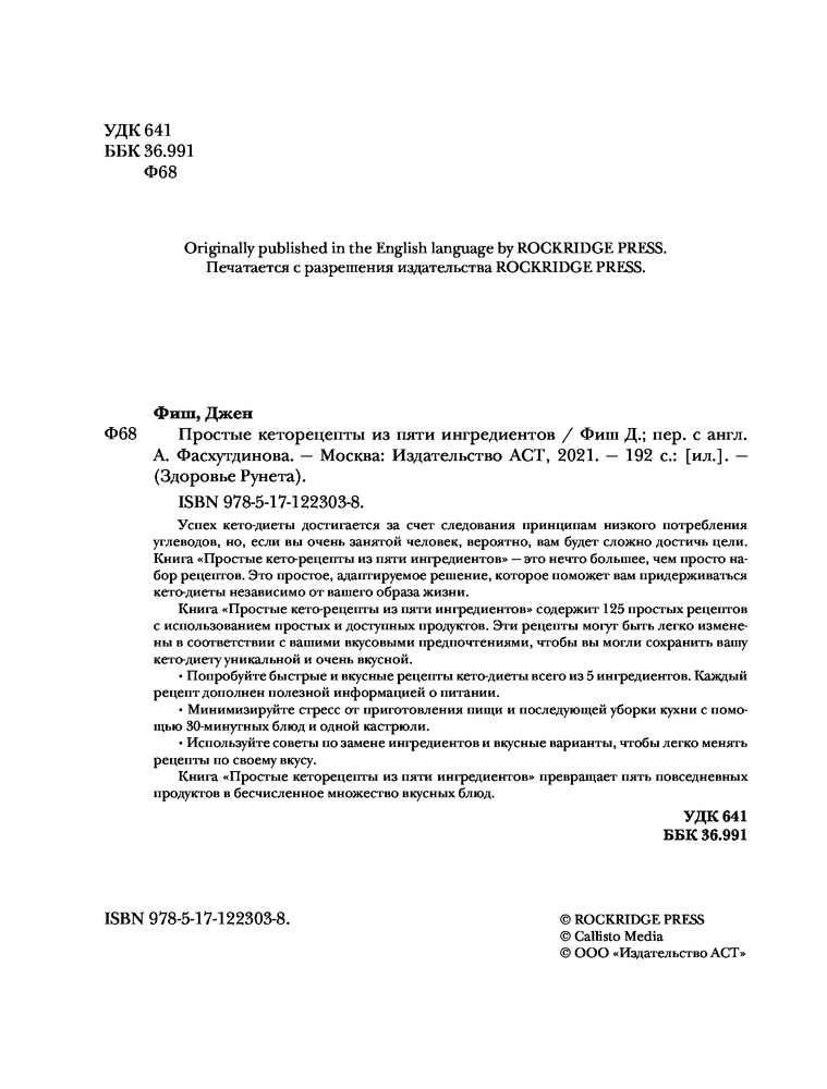 💳 Оплатить за товар можно при получении 🇰🇿 Есть бесплатная доставка по Казахстану 🎁 Копите бонусы с каждой покупки Серия: Здоровье Рунета Успех кето-диеты достигается за счет следования принципам низкого потребления углеводов, но, если вы очень занятой человек, вероятно, вам будет сложно достичь цели. Книга «Простые кето-рецепты из пяти ингредиентов» — это нечто большее, чем просто набор рецептов. Это простое, адаптируемое решение, которое поможет вам придерживаться кето-диеты независимо от вашего образа жизни. |