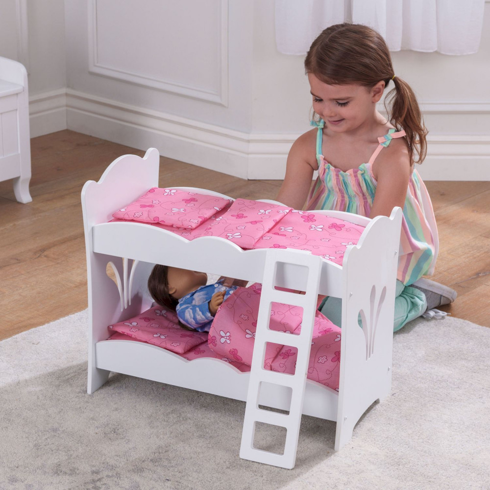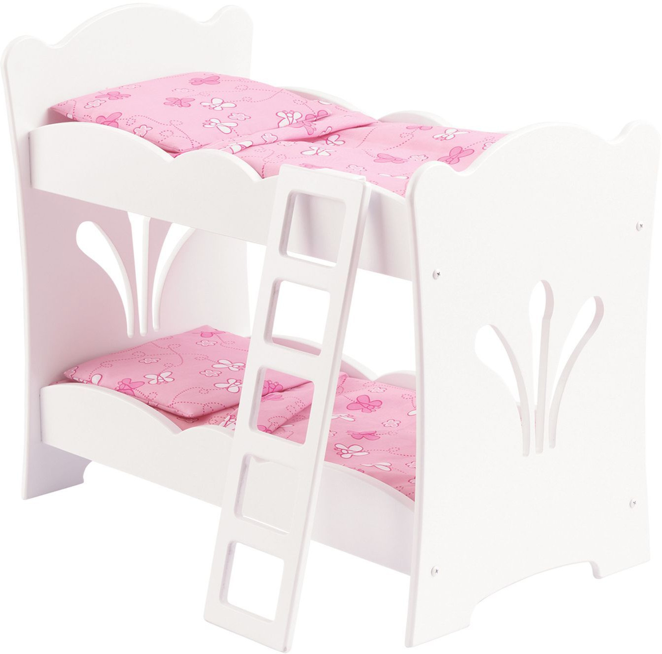 Кроватка с красивыми резными узорами на корпусе поможет девочкам разнообразить сюжеты игры с любимыми куколками, укладывая спать сразу 2 игрушки. Ведь изделие состоит из нескольких ярусов, а лестница из комплекта поможет попасть на 2 уровень. Кроватка дополнена комплектом постельного белья, поэтому игрушки можно положить на мягкий матрасик с подушкой и накрыть их одеялом.