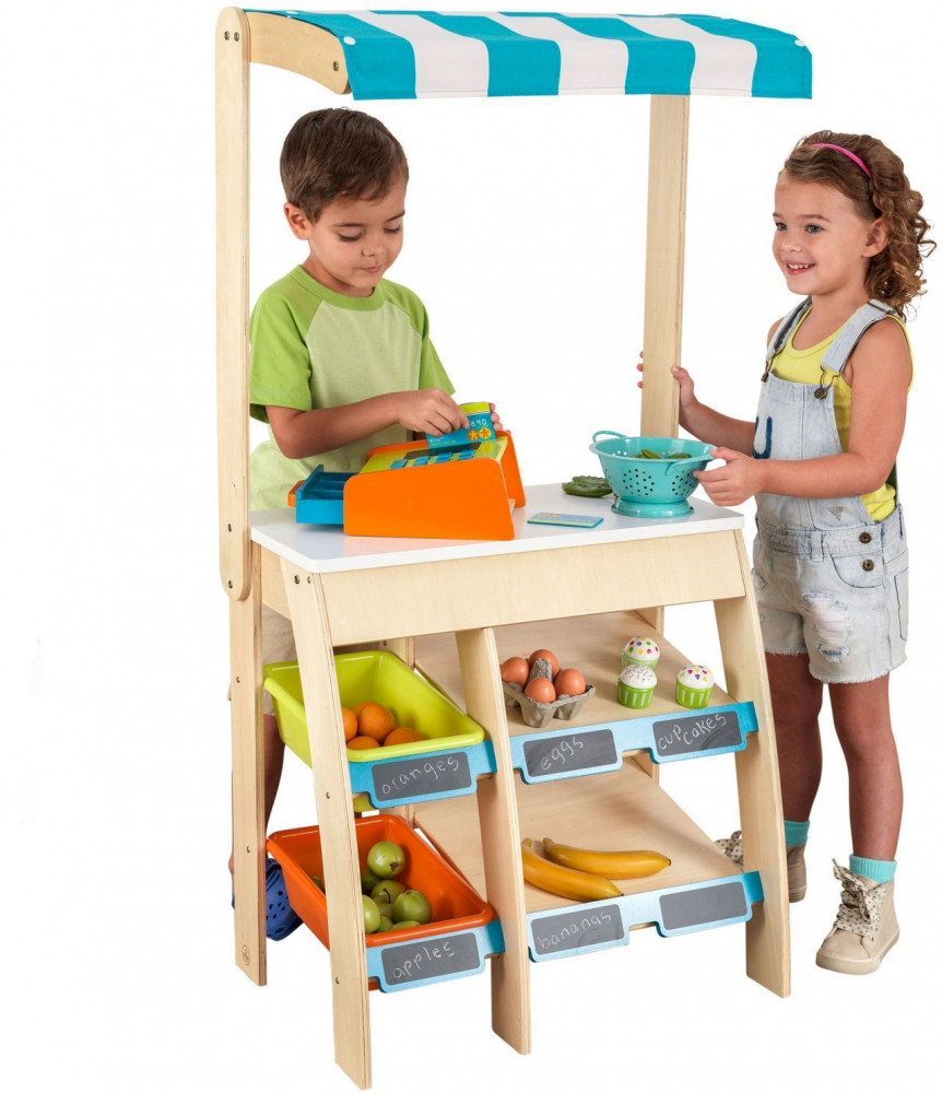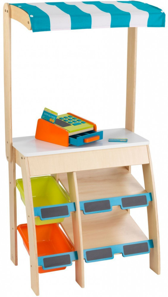 Кукольная площадка для торговли из дерева под названием «Бакалея» спроектирована компанией «KidKraft». В набор входит кассовый аппарат и большое количество дополнительных аксессуаров.