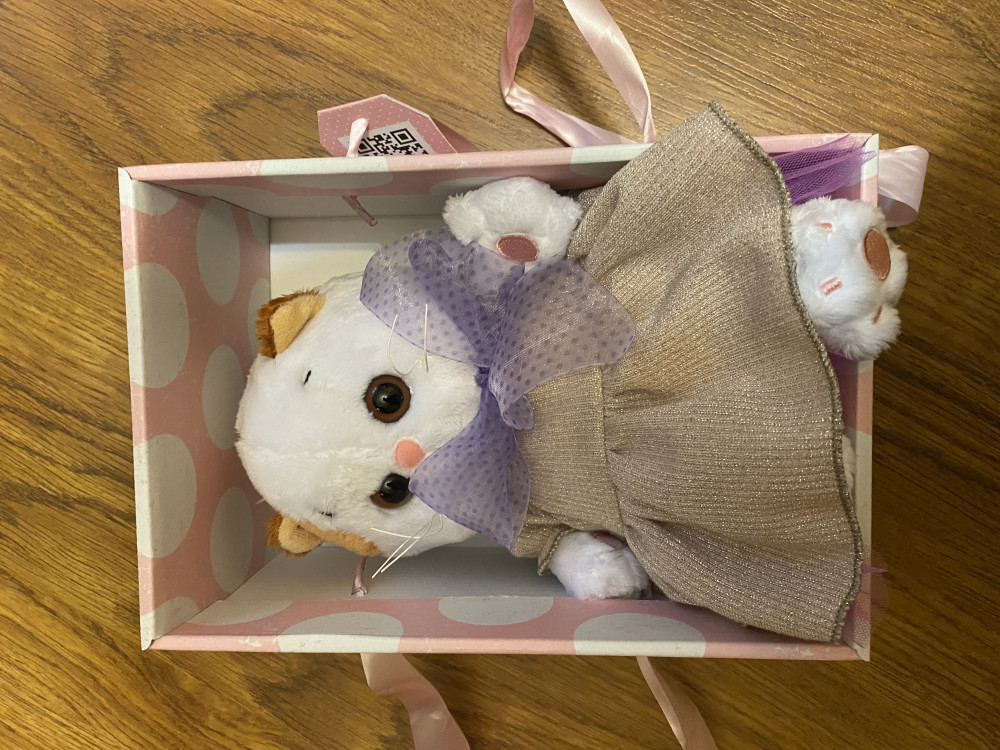 Мягкая игрушка очень понравилась моей внучке 4,5года.Упакована в подарочную коробку.Кошечка такая же как на картинке.Хороший подарок доя девочек 2-5 лет