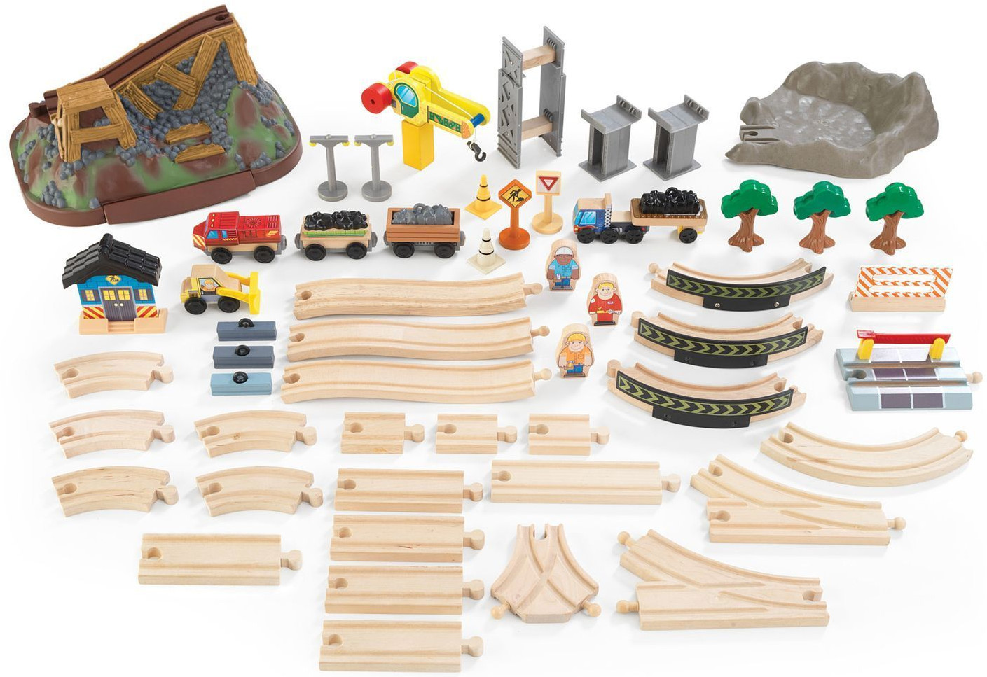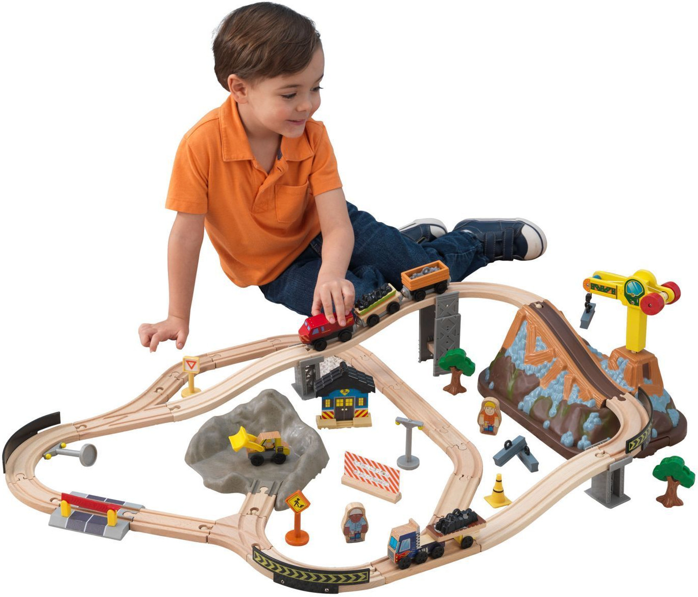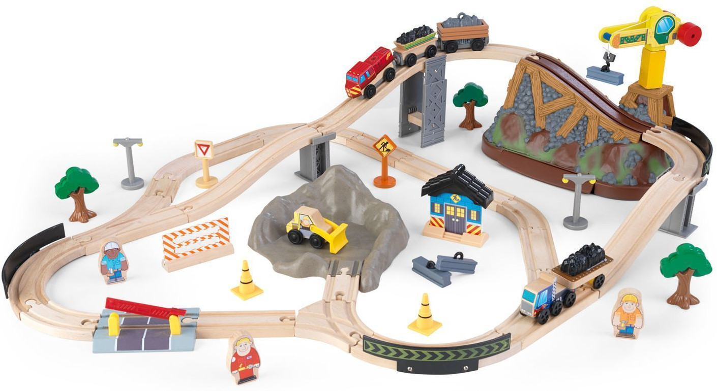 В данный момент этот товар отсутствует в продаже. Возможно, у нас найдется аналогичный или похожий товар здесь. Замечательная игрушка от торговой марки «KidKraft» надолго увлечет маленького любителя дорожных приключений и подарит множество положительных эмоций. Дополнительные детали, такие как горный подъем, здания, подъемный кран, машинки, деревья, фигурки людей, помогут ребенку создать целый маленький мир. Вагоны паровоза легко соединяются друг с другом при помощи магнита и без труда входят в любой поворот и преодолевают крутые подъемы и спуски.