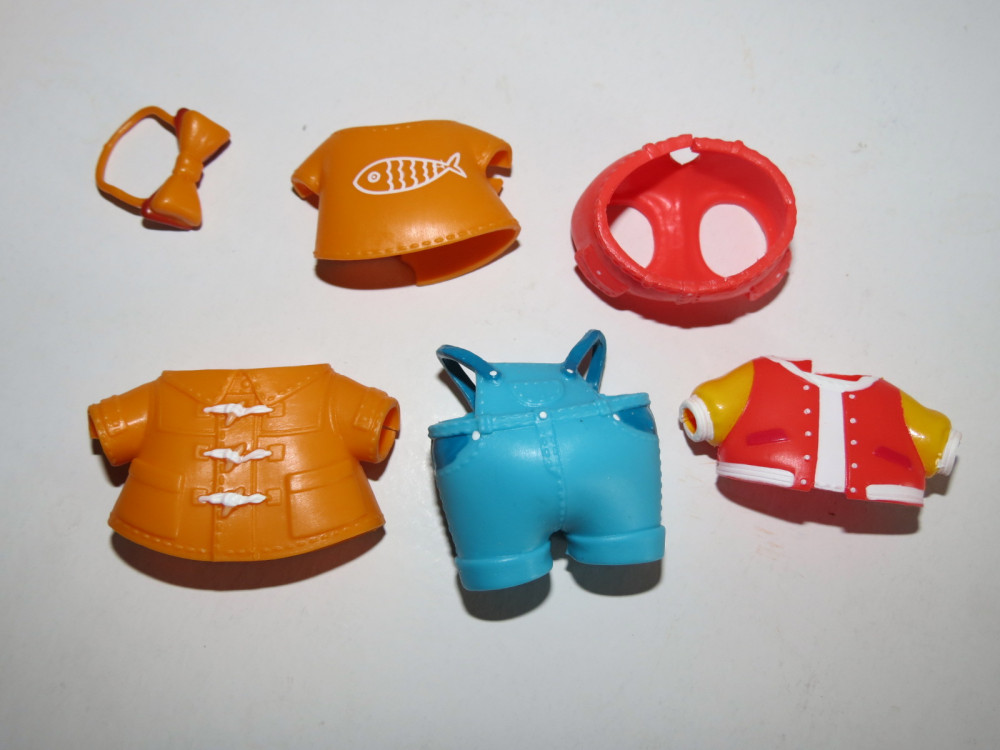 Котик очень милый, голова мягкая, снимается. Одежда в пакетиках, интересно распаковывать, хотя это неэкологично. У одной курточки оказался резкий химический запах, еще одна вещь пахла слабо, остальные нормальные. У синего комбинезона пришлось срезать сзади лямки, иначе они не надеваются на ручки. Кофточки и курточки надеваются полностью только без штанишек, если накидываешь поверх штанов, то вид сзади некрасивый, этот момент производители как-то не продумали. Одежка подходит некоторым другим куколкам.