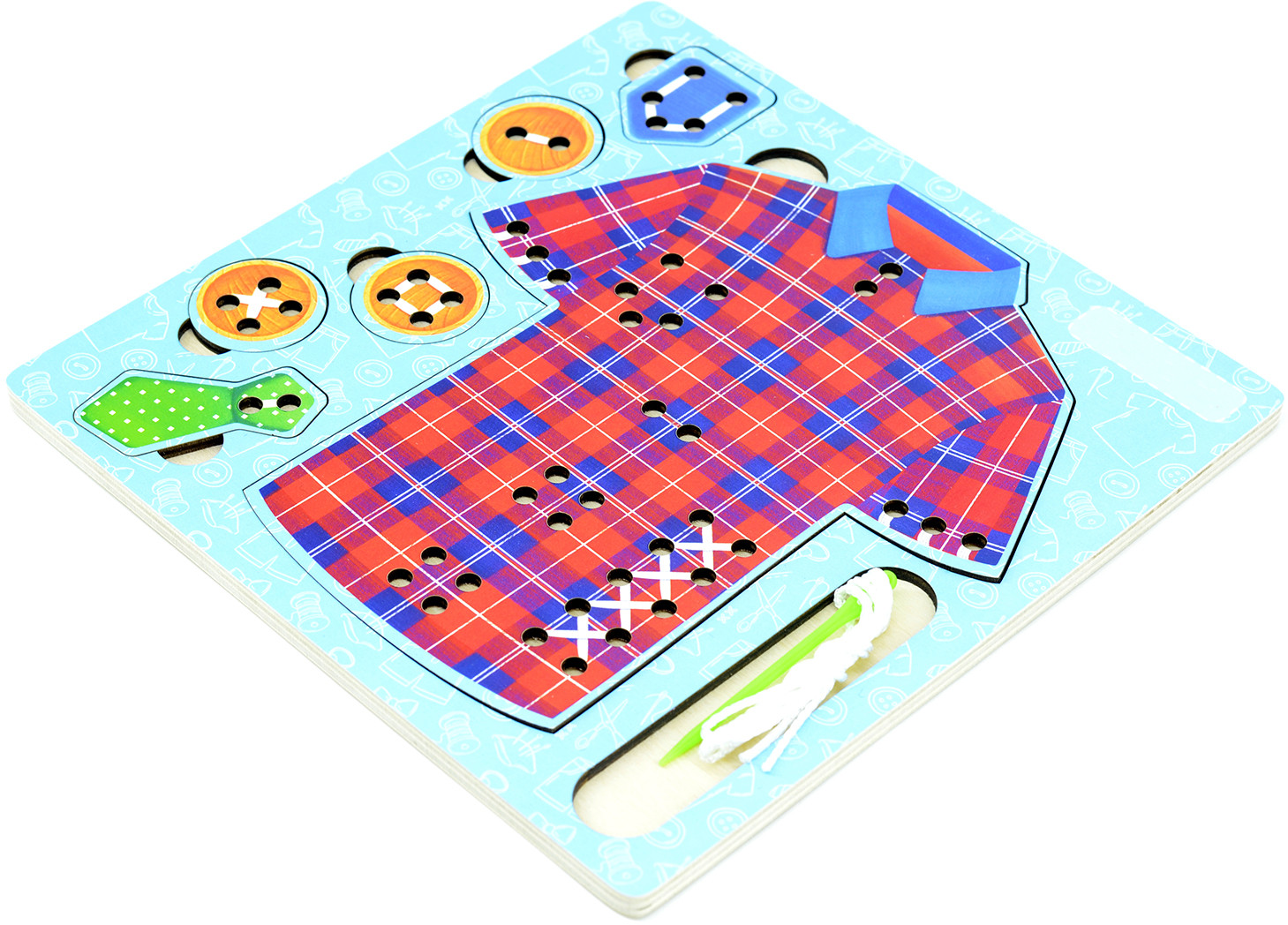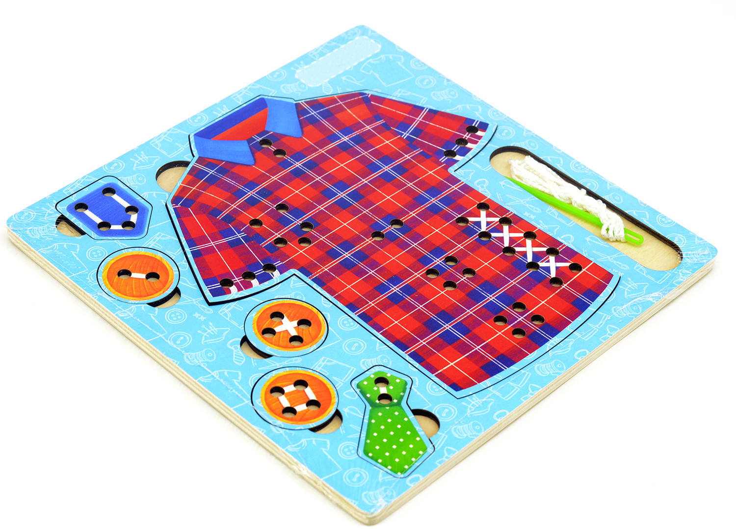 Серия: Иглоборд Игрушка представляет собой доску с отверстиями, с помощью которой можно научиться различным видам стежков. Покажите ребенку, как играть с этой игрушкой. Для этого вденьте нитку в иголку и повторите любой стежок, изображенный на карточке. Повторите это несколько раз, комментируя свои действия — это поможет ребенку запомнить последовательность и позволит быстрее освоить навык шитья. |
