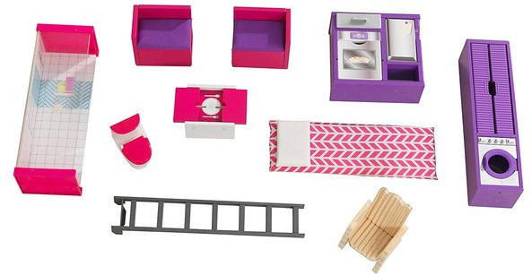 Ребенок может самостоятельно расставить мебель в комнатах, представляя себя дизайнером, дополнительно можно приобрести текстильные элементы, который сделают дом еще более уютным и комфортным. В процессе игры ребенок сможет развить свое воображение, фантазию, образное мышление, потренирует мелкую моторику рук и координацию движений, сможет проявить чувство вкуса и стиля. |