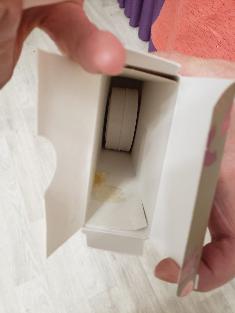 вскрыли, чтобы посмотреть содержимое, которое вытекло с жидкого мыла. ужасно. брала в подарок и если бы подарила в таком состоянии, то было бы после совсем неловко.