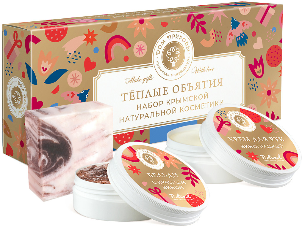 Мануфактура Дом Природы Набор подарочный «Теплые объятия»В данный момент этот товар отсутствует в продаже. Возможно, у нас найдется аналогичный или похожий товар здесь. Тёплые объятия нужны всем без исключения. Они дарят чувство защищенности, поддержки, любви, душевной близости и доброго отношения. Объятия сближают, и мысли о них согревают еще долгое время после встречи. Подарочный набор «Теплые объятия» будет напоминать о вас дорогим людям каждый раз, когда они вдохнут аромат пены нежного натурального мыла на кокосовых сливках или мягкого бельди с красным вином, ощутят мягкость своих рук от использования виноградного крема. Дарите «Теплые объятия». |