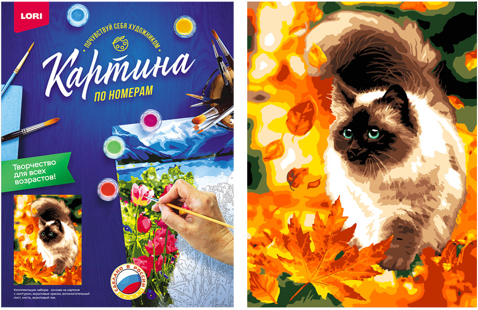 Процесс росписи прост. Рисунок разделен на множество мелких фрагментов, на каждом указано число. Оно соответствует цвету, которым нужно заполнить данный участок. В набор входят все необходимые оттенки красок.
