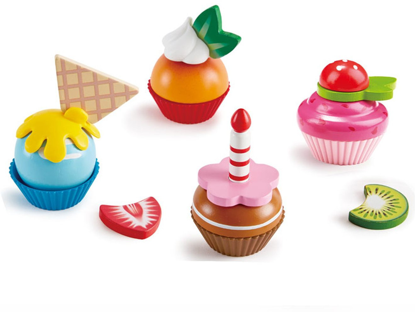 Время сладкого угощения! Свободно комбинируйте и создавайте свои собственные игровые кексы с разнообразными эффектными начинками, включая свечу, фрукты и вафлю. Кексы Hape имеют яркий дизайн, разнообразные формы и текстуры улучшают игровой процесс. Маленькие пекари могут изучать цвета, считать и развивать мелкую моторику.