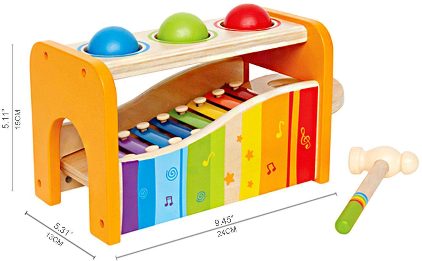 💳 Оплатить за товар можно при получении 🇰🇿 Есть бесплатная доставка по Казахстану от 1 дня 🎁 Копите бонусы с каждой покупки Музыкальная скамейка — деревянная игрушка 2 в 1 для творческих детей. Игрушка имеет два яруса: верхний — это стучалка с вынимающимися шариками, в нижнем — яркий ксилофон. По шарикам нужно стучать деревянным и они звонко скатятся вниз, ударяя по клавишам ксилофона, при этом каждый шарик издает разный звук. Ксилофон можно достать из корпуса и с помощью молоточка проигрывать на нем веселые нотки. |