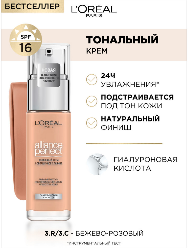 L'Oreal Paris Тональный крем «Alliance Perfect. Совершенное слияние» обогащенный гиалуроновой кислотой, оттенок 3.R / 3.C