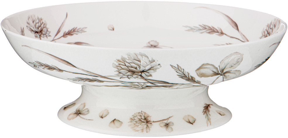 Ваза выполнена из фарфора высокого качества. Широкая ваза на ножке предназначена для подачи различных сладостей или фруктов. Изящная классическая ваза станет прекрасным дополнением к набору посуды, отлично подойдет для сервировки праздничного стола, а также будет прекрасным подарком. Легко и быстро моется. Подходит для мытья в посудомоечной машине.