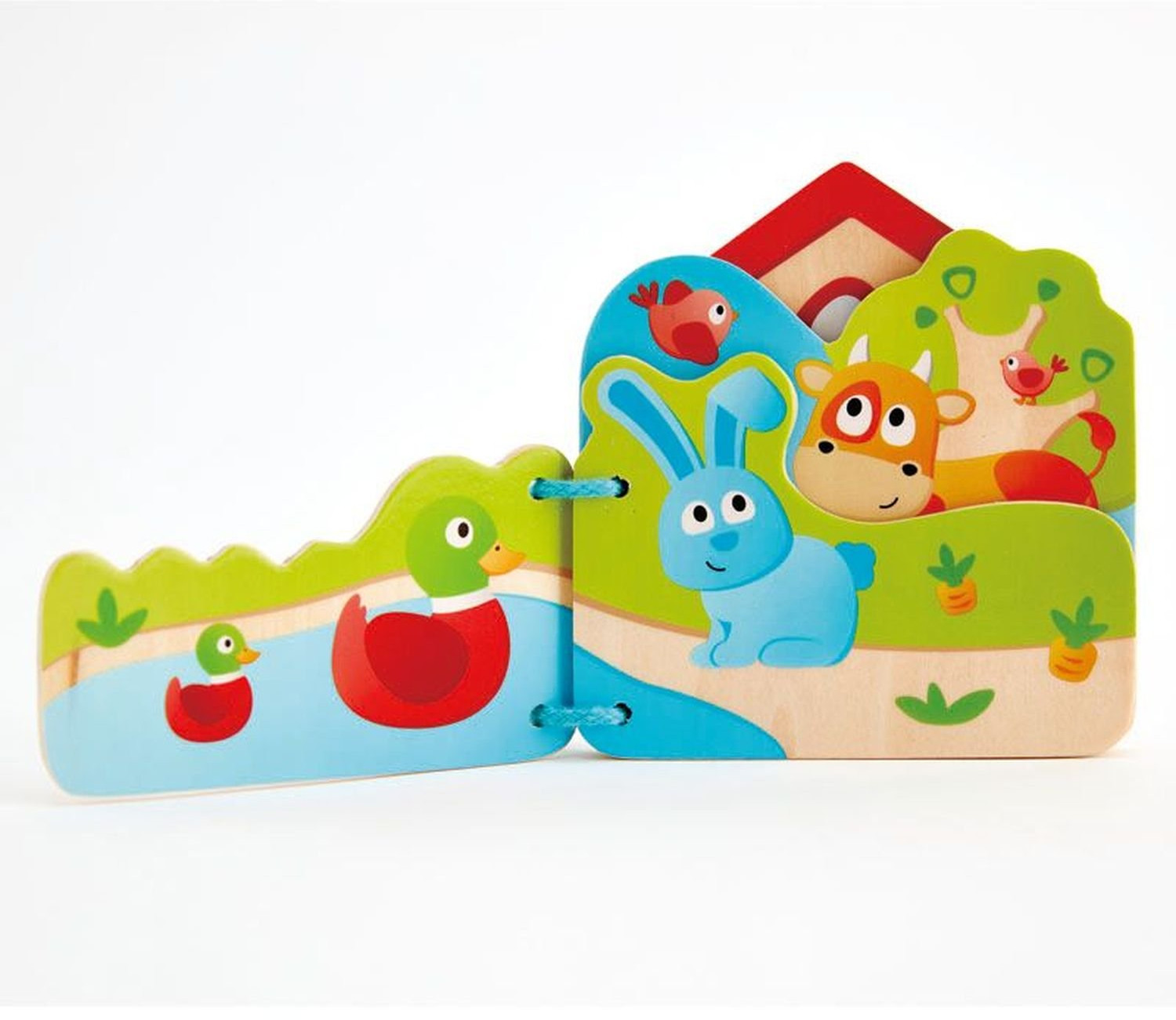 Игрушка даст ранее представление о животных. Выполнена из дерева, не боится детских зубов. Игрушка имеет яркие иллюстрации на каждой странице, которые привлекают внимание ребенка. Стимулирует зрение и осязание ребенка. В процессе игры развиваются умственные и моторные функции малыша. |